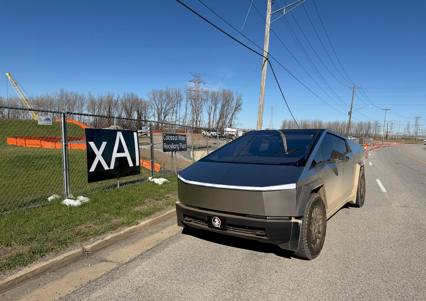 Despite having made numerous field trips to the nearby Chucalissa Indian Village historic site and attending family reunions at T.O. Fuller State Park, I had never actually ventured into the industrial park where xAI’s operations are located. As I drove by the massive, fenced and heavily guarded Colossus I data center, the construction being undertaken to build the Colossus Water Recycling Plant caught my eye, so with the road partially blocked off, I decided to stop and take some pictures of xAI’s expansion to meet their increasing water demand. I was the only one on the road at the time, and to my surprise, as I was taking my photos, a Cybertruck emblazoned with a Florida State logo on the front pulled up behind my vehicle, and I could see the driver taking pictures of me and my truck. Because I was on a public road with no surveillance cameras on the construction site and no workers visible, I wondered who sent them and why they had suddenly appeared. These questions were never answered.