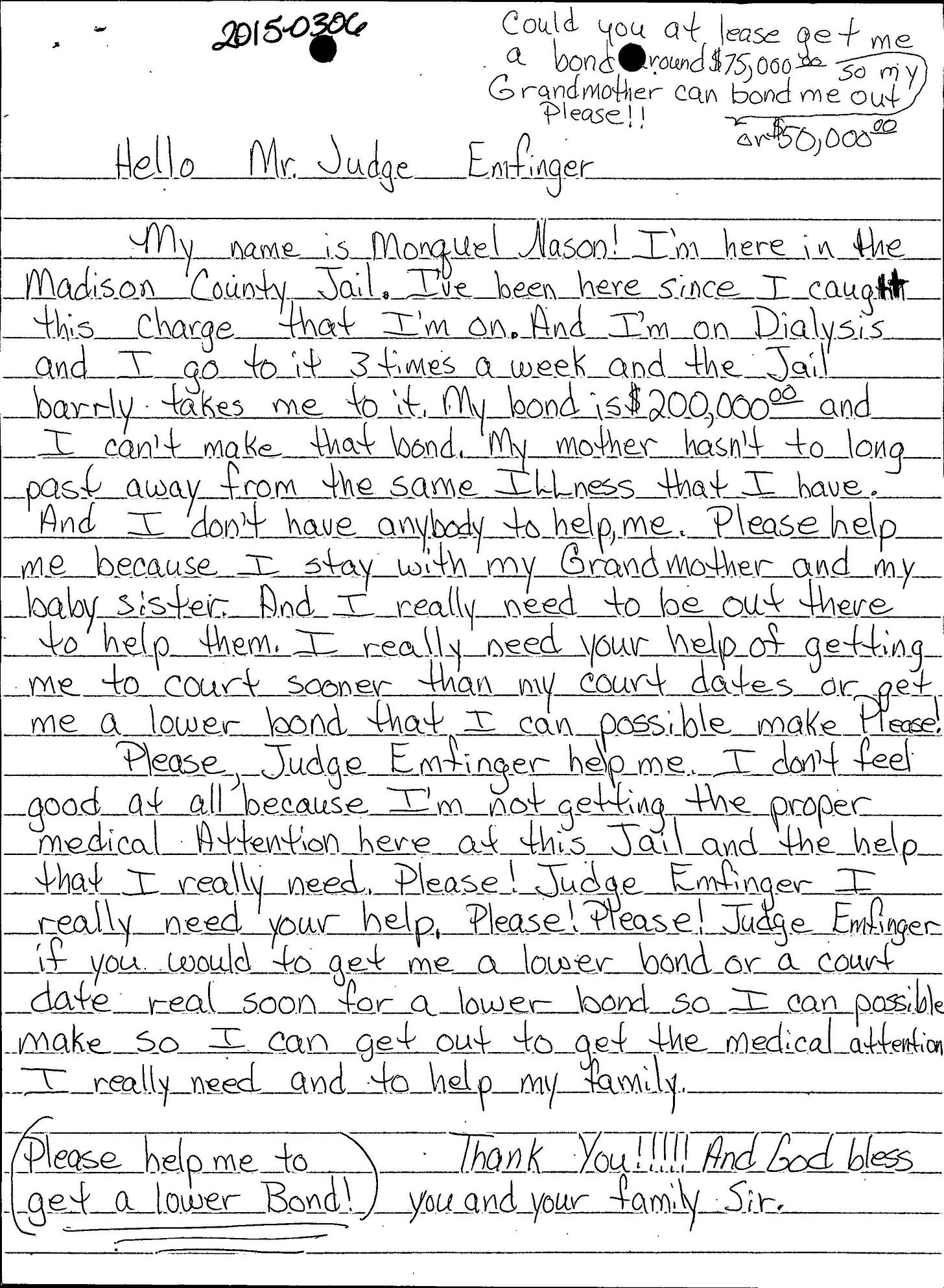 “My mother hasn’t long past [sic] away from the same illness I have,” Nason wrote. “Please, Judge Emfinger, help me. I don’t feel good at all because I’m not getting the proper medical attention here at this jail, and the help I really need. Please! Judge Emfinger, I really need your help. Please! Please!”